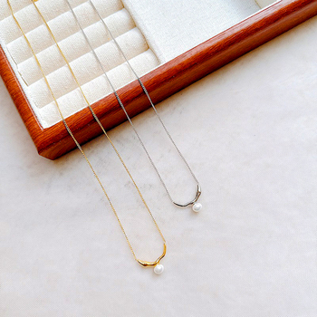 Stainless Steel Minimalist Style 18k Gold Plated White Irregular Pearl Simple Dangling Pendant Necklace Girls Jewelry Daily