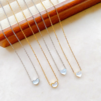 Stainless Steel 18 Gold Plated Three-dimensional Convex Mother-of-pearl Shell Heart Pendant Necklace for Women Jewelry