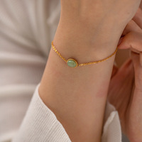 Cadena fina de acero inoxidable solo Jade piedras preciosas joyería de mano 18K chapado en oro verde Dong Ling oval Piedra Natural pulsera Mujer