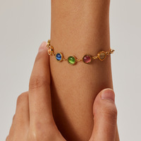 Piedra preciosa de ópalo natural, pulsera de ojo de gato de colores redondos, pulsera de piedras mágicas de acero inoxidable de oro de 18k para niñas, brazalete que no se desvanece