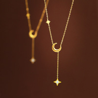 Collana semplice con nappine di luna a catena per ragazze placcato in oro 18K in acciaio inossidabile senza intaccatura gioielli con ciondolo a stella fortunata